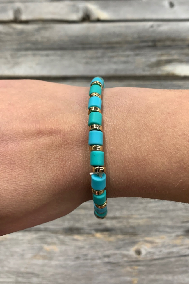 Simple yet striking, this Glossy Gold Disc Bead Bracelet adds a modern metallic touch to any stack. Featuring a full strand of shiny gold-tone disc beads, this bracelet is both bold and versatile. The stretch design offers a comfortable fit, making it perfect for everyday wear or pairing with other favorites for a layered look.